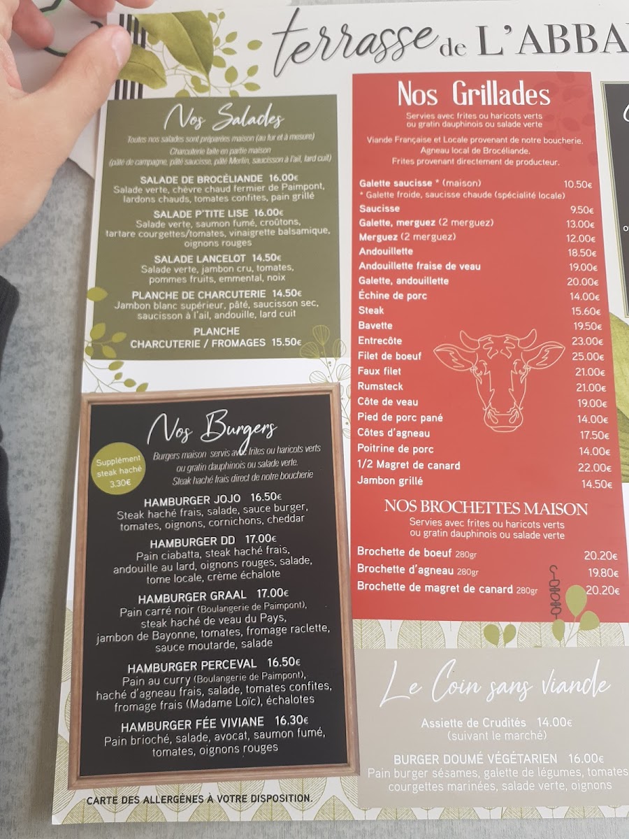 Welcome to Terrasse de l'abbaye, a delightful culinary gem nestled by the serene lakeside in Paimpont, France. This charming venue offers a menu brimming with local flavors and hearty portions. Guests rave about the exceptional quality of dishes that highlight grilled meats and fresh charcuterie sourced from their own butcher's shop.